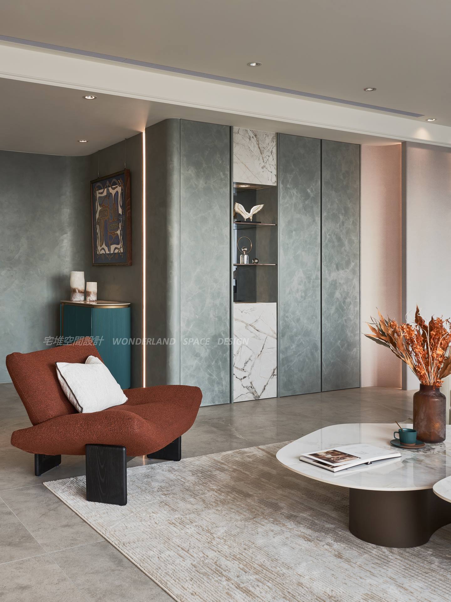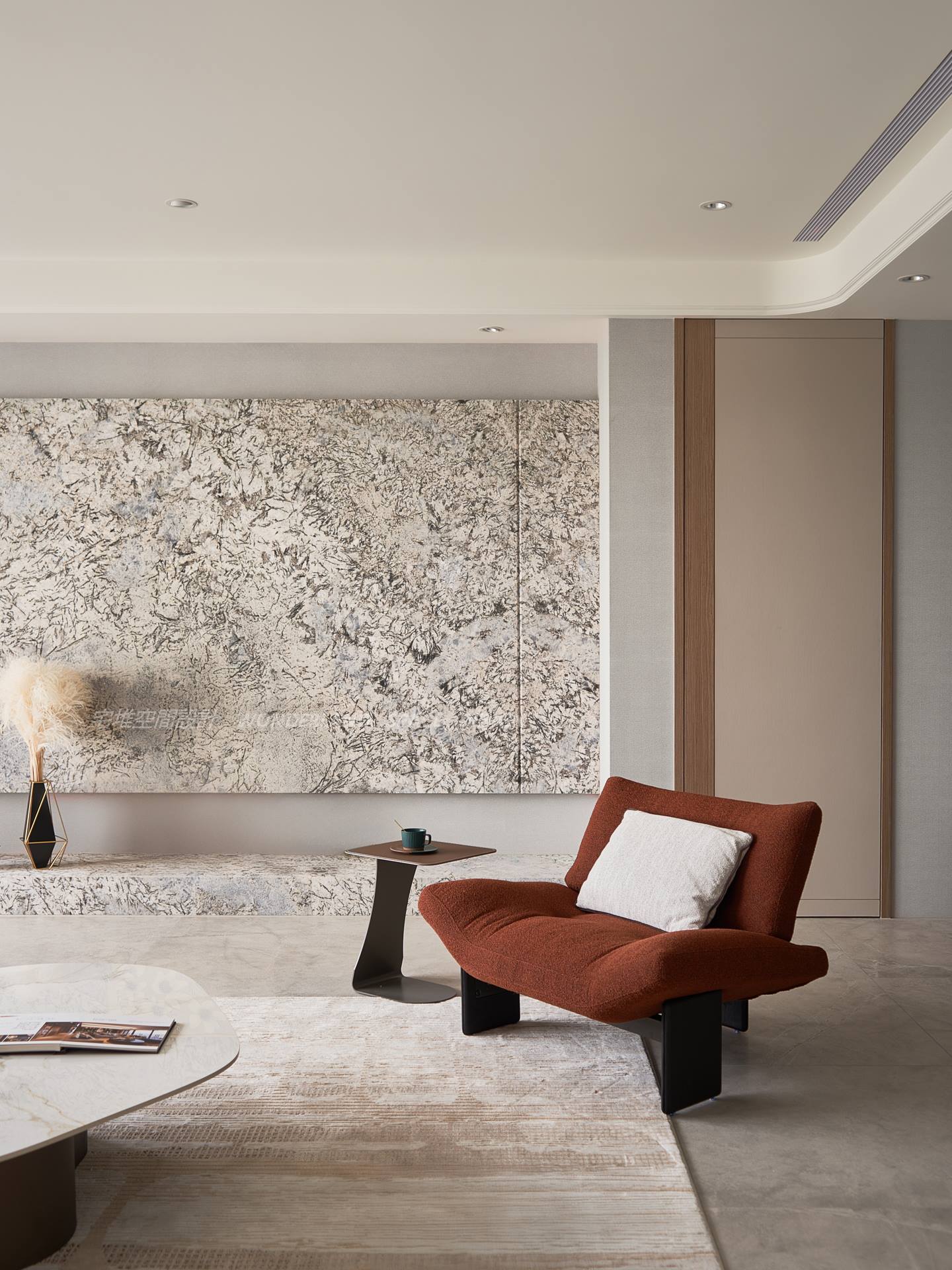 取自大地色系的穩定基底,透過石材的紋理與木質的肌理,建立空間連結。 光線在各介面中遊走,使材質層次自然浮現,打造最純粹、舒適家居。